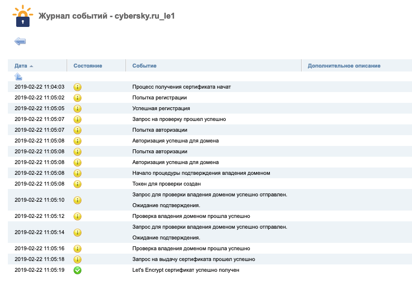 Вы можете наблюдать за ходом процесса выпуска сертификата