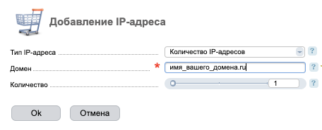 **Для добавления выделенного IP адреса ваш домен должен располагаться на наших DNS серверах. Либо вам придется самостоятельно изменить А-запись на вашей DNS площадке