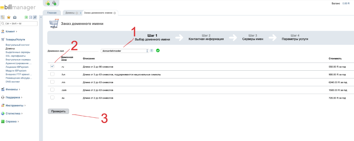 Как купить домен ISP Manager