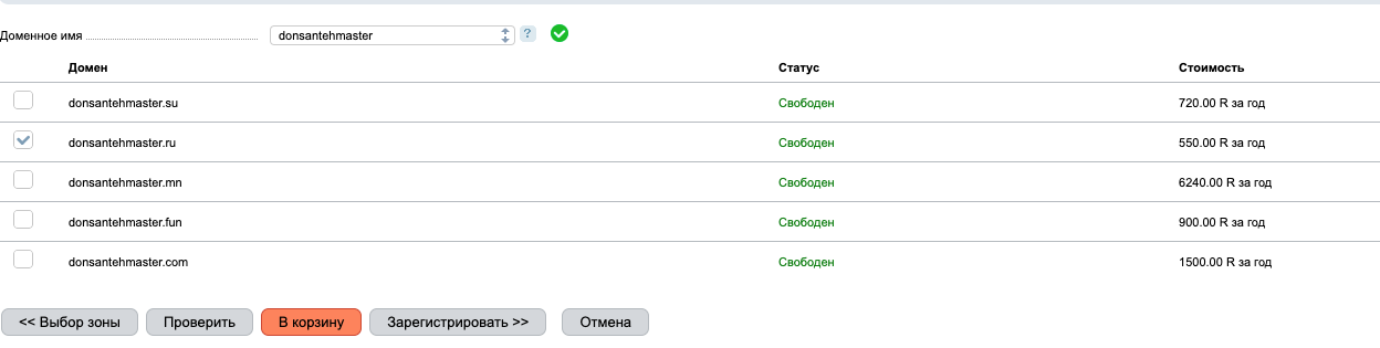 вводите доменное имя без (.ru) - нажимаете проверить