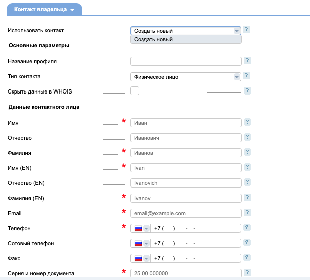 вводите все контактные данные