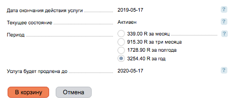 Вы можете продлевать услуги на любой из доступных периодов оплаты.